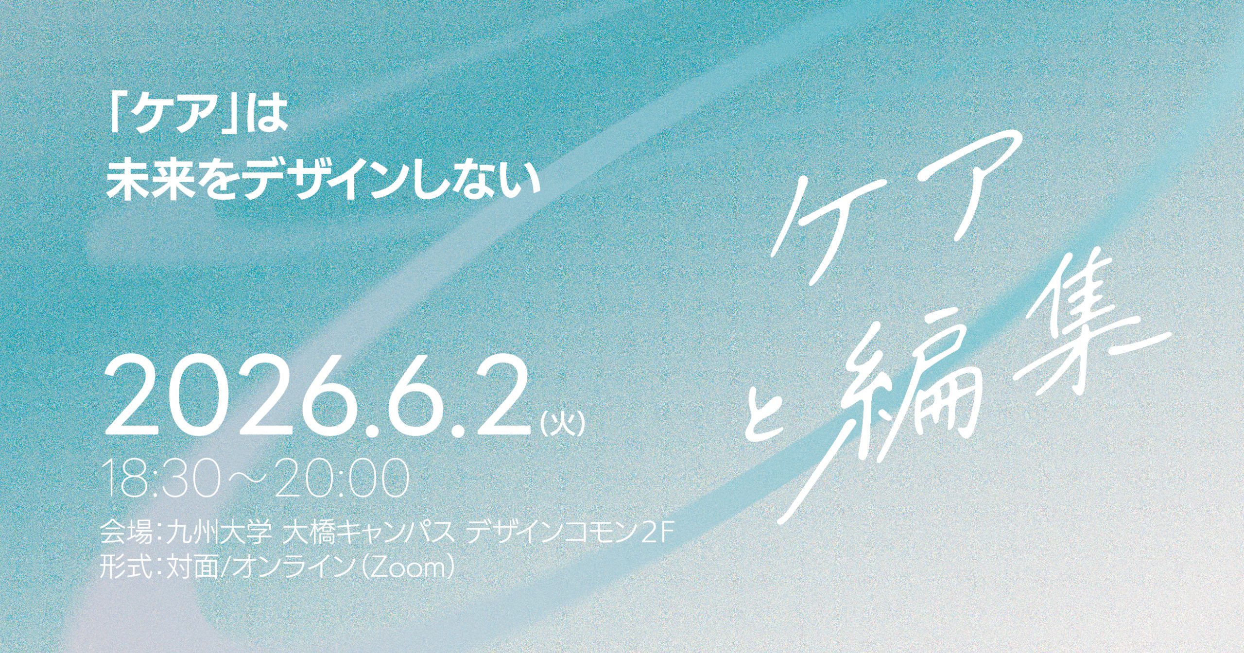 九州大学芸術工学研究院応用人類学研究センター(PArc)レジリエンスデザイン部門では、編集者の白石正明氏をお招きし、講演会“「ケア」は未来をデザインしない”を開催します。